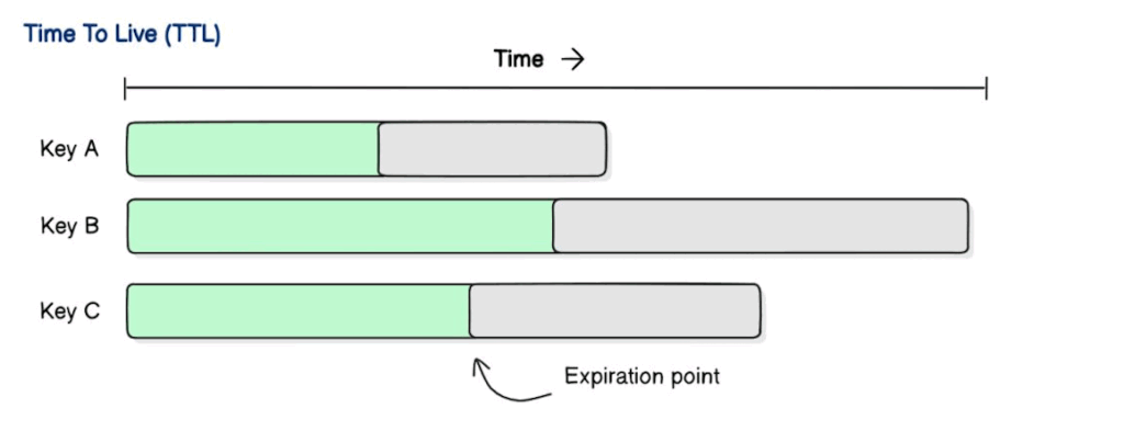 Cada item tem um tempo de vida definido — digamos, 10 minutos — e após esse prazo, é automaticamente descartado.